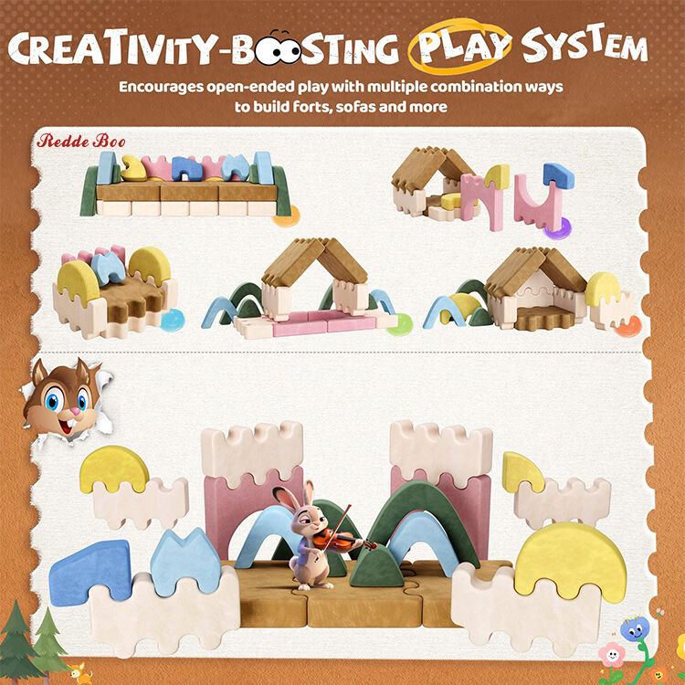 The Modular Kids' Play Couch breaks the single form of traditional sofas. Composed of 2-3 independent modules, it allows kids to assemble freely according to their preferences. For example, the modules can be assembled into a "small sofa" for sitting or lying, placed separately to form a "play tunnel" for crawling through, or stacked into a "small table" for placing toys and picture books, meeting the dual needs of playing and learning. The modules are fixed by hidden hook-and-loop fasteners, ensuring stable assembly without easy separation. It not only helps develop kids' spatial thinking and hands-on ability but also allows parents to participate in interactions, creating parent-child playtime.