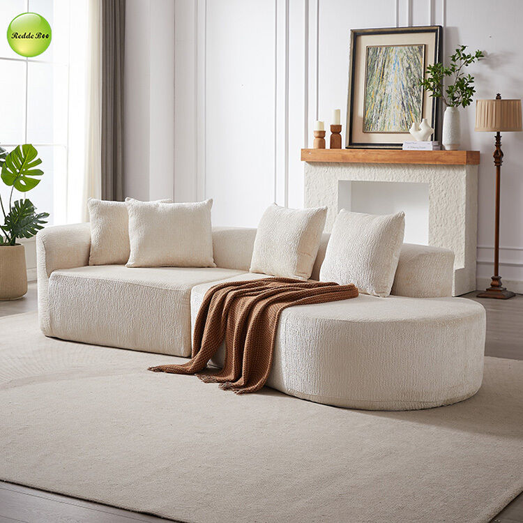 The sofa's surface features premium Chenille Fabric, known for its delicate texture and soft, skin-friendly touch. This breathable, wear-resistant material is easy to clean and maintains its fresh appearance over time. The fabric's subtle sheen complements various interior styles while adding warmth to your living space.
