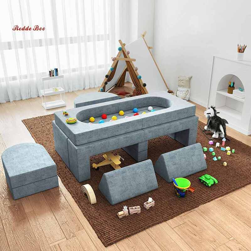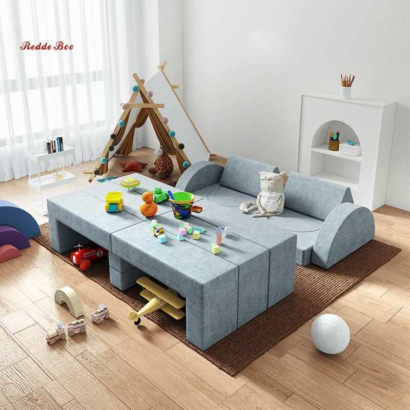 The Popular Compressible Kids' Game Area Sofa features a modular design as its core, consisting of 3-4 independent detachable modules that meet the gaming and leisure needs of children aged 1-8. The lightweight modules are easy for kids to handle, allowing them to freely assemble them into various shapes such as a "play castle," "small sofa," or "crawling tunnel"—which helps develop their spatial thinking and hands-on skills. Additionally, it boasts superb compressibility: when not in use, it can be folded down to 1/4 of its original size and easily stored in the included storage bag, without taking up space in the play area or living room. All module edges adopt a rounded edge wrapping technique, with no sharp corners, and the connection points are secured by hidden hook-and-loop fasteners, ensuring stability and preventing disassembly—keeping kids safe during play.
